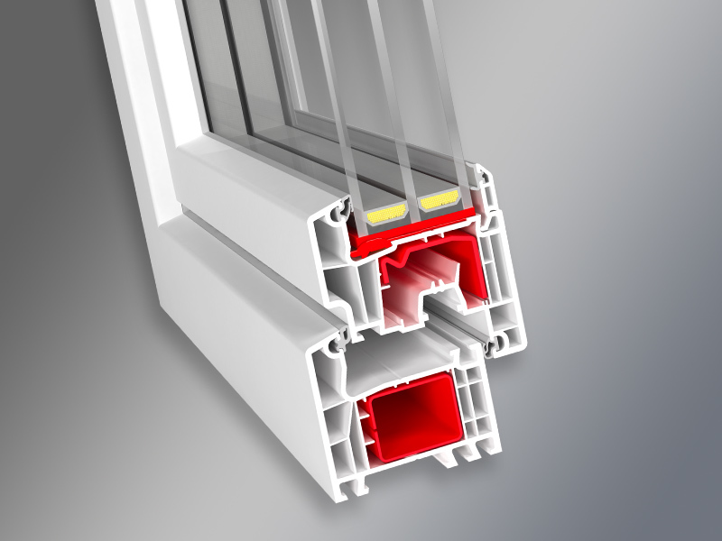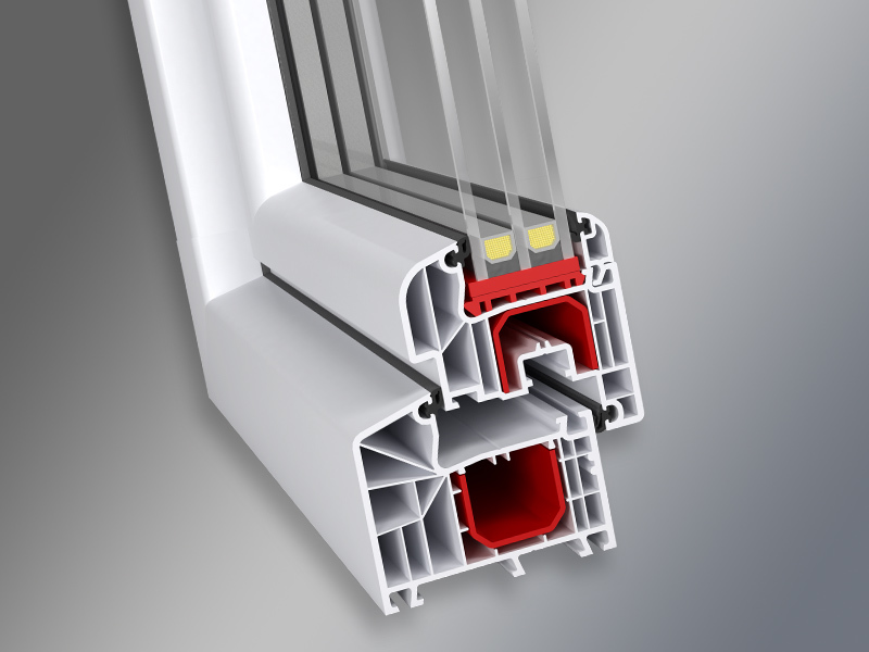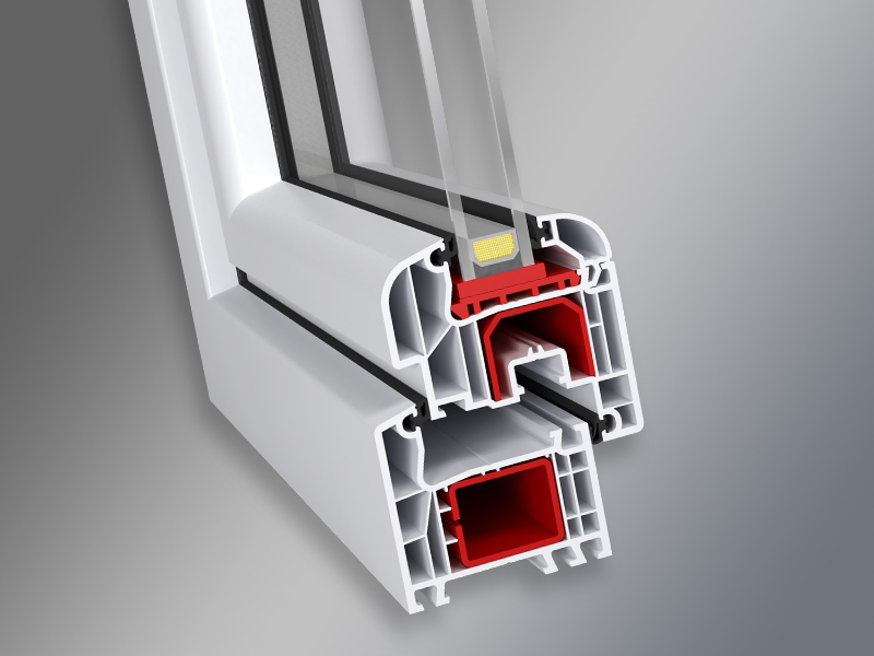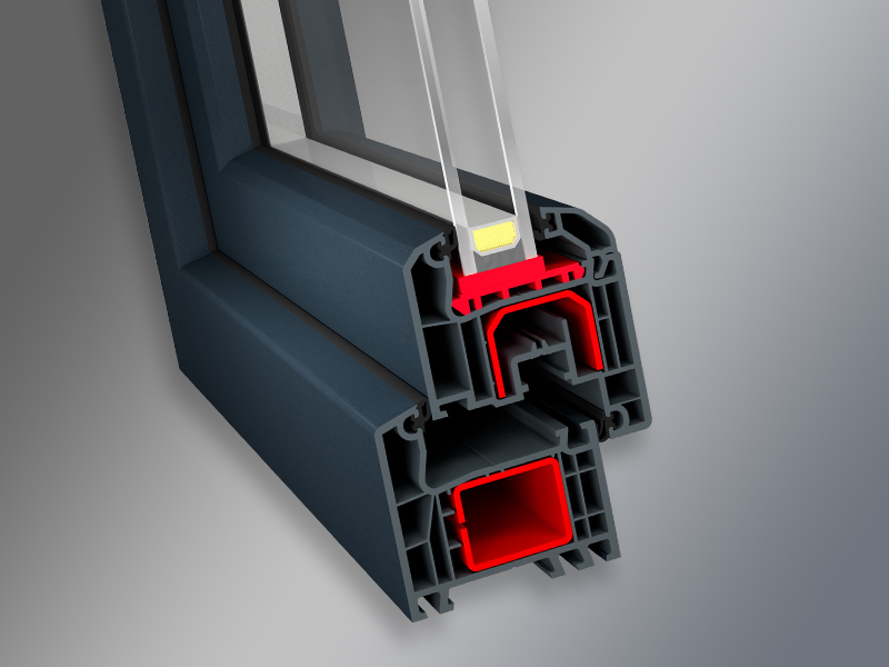 - 5-6 komorowa budowa i głębokość zabudowy 70 mm zapewniają optymalną izolację termiczną i akustyczną (1,3 W/m2K wg DIN 52619)